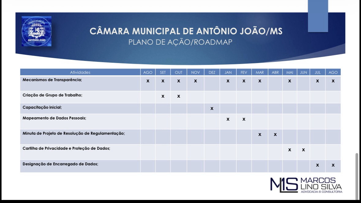 | 12/12/2025 | Capacitação sobre a LGPD e apresentação do Plano de Ação na Câmara Municipal. |